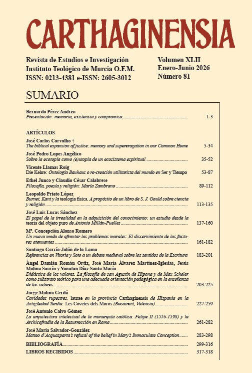 Número misceláneo de artículos: Este nuevo numero expresa el compromiso que la revista sostiene desde sus comienzos y que muestra que los artículos que componen este volumen giran en torno a una misma inquietud: comprender el mundo desde una mirada que une pensamiento y vida, razón y fe, historia y esperanza. Lejos de constituir un repertorio de temas dispersos, el conjunto ofrece una visión de conjunto sobre el modo en que la teología, la filosofía y la historia se entrecruzan hoy en un esfuerzo común por volver a pensar lo humano. En tiempos de fragmentación y discursos parciales, estas páginas buscan restablecer una unidad del saber que no es uniformidad, sino armonía en la diferencia.